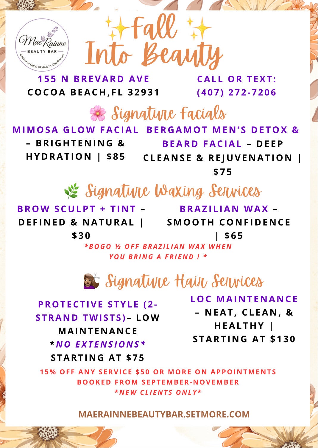 #MaeRainneBeautyBar #FallIntoBeauty #CocoaBeachBeauty #HolisticEsthetician #HealthyHairHealthySkin