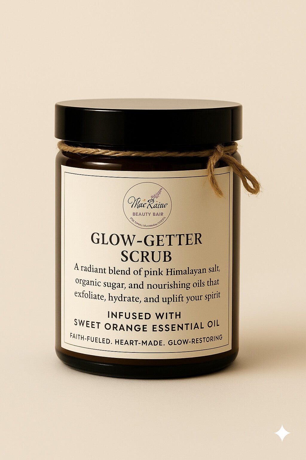 Ready to be a Glow-Getter? Embrace your 3-day glow ritual and watch your skin transform. This luxurious scrub features a powerful blend of organic sugar and Himalayan salt to polish away dullness, while pure grapeseed and avocado oils deeply hydrate. With every application, you'll enjoy the vibrant sweet orange aroma that will uplift your spirit. Use the mini wooden spoon to scoop out this nourishing blend and commit to lasting radiance, three times a week.